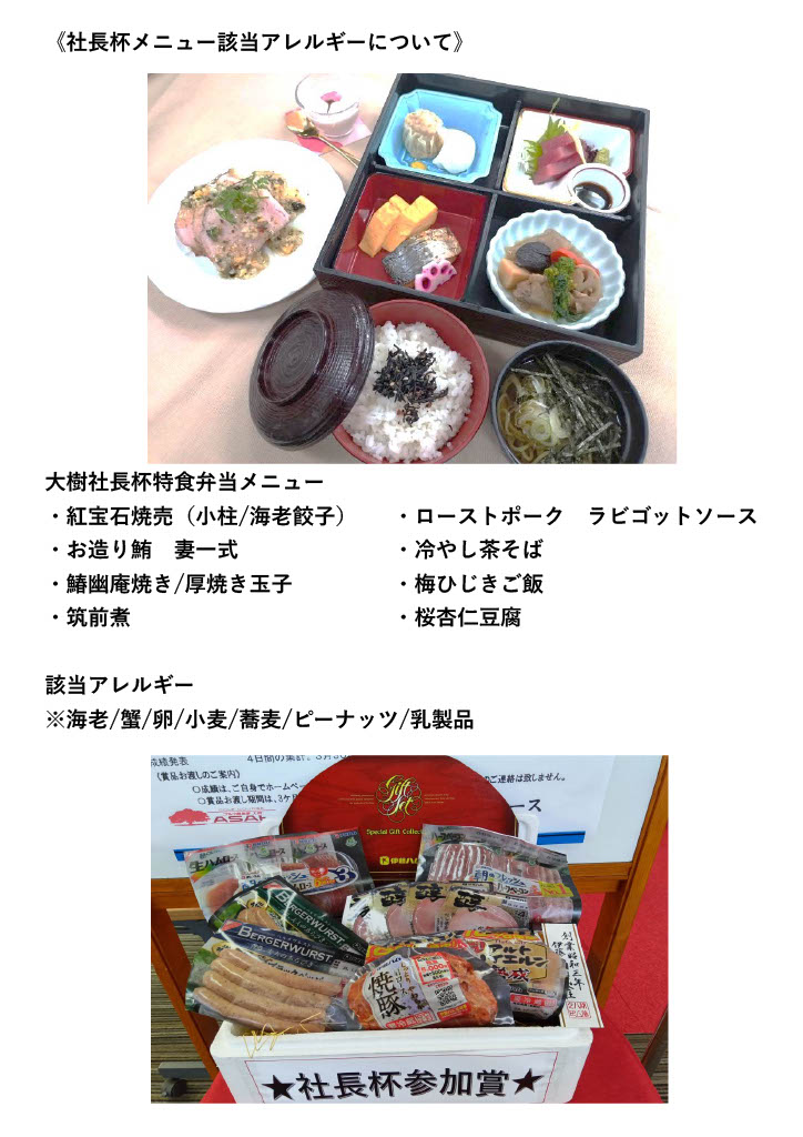 社長杯 昼食メニューと参加賞のご案内
